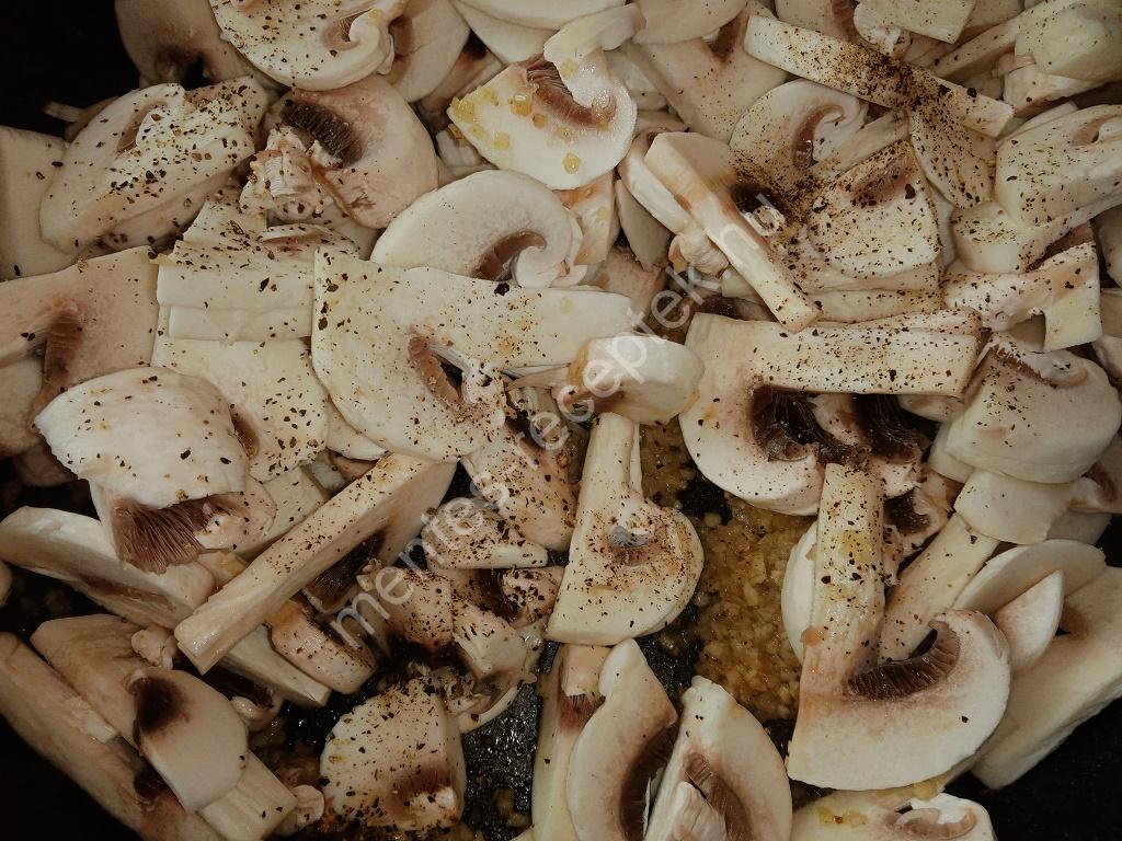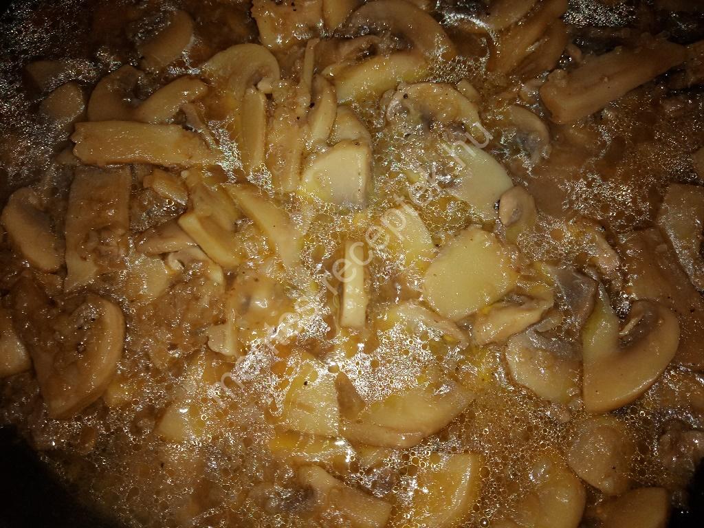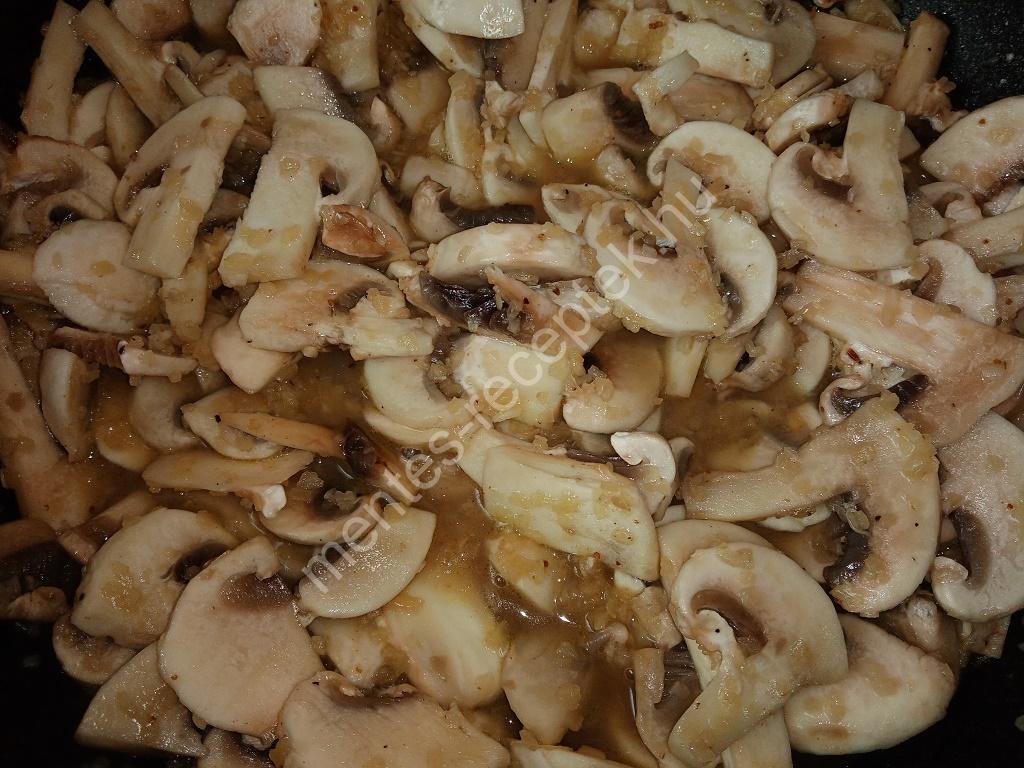 Fedő alatt pároljuk, míg a gomba kb. félpuha lesz.