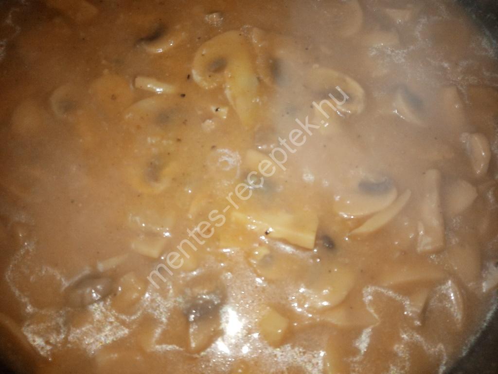 Fedő alatt pároljuk, míg a gomba kb. félpuha lesz.