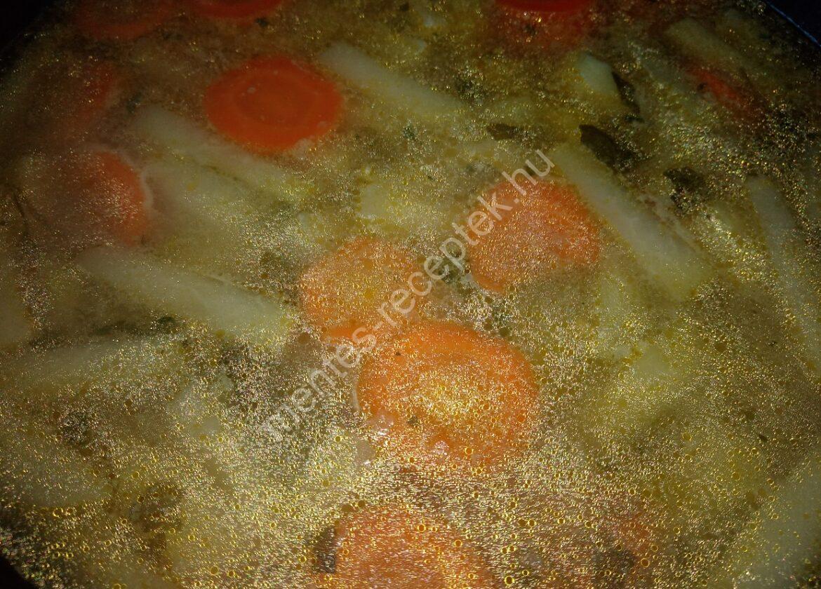 Ezt magas fokozaton felforraljuk, majd alacsony fokozaton fedő alatt puhára főzzük.