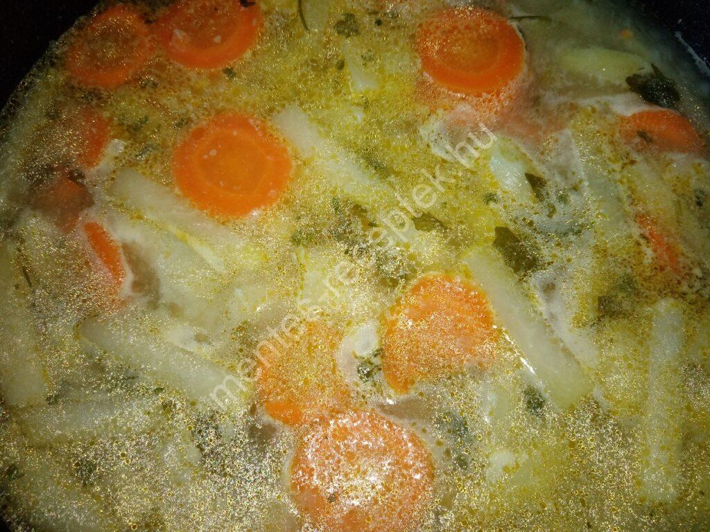 Ezt magas fokozaton felforraljuk, majd alacsony fokozaton fedő alatt puhára főzzük.