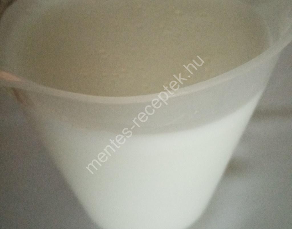 Először az ásványvizet felforraljuk (Ha ezt a lépést kihagyjuk max. egy napig fogyasztható a tej!).