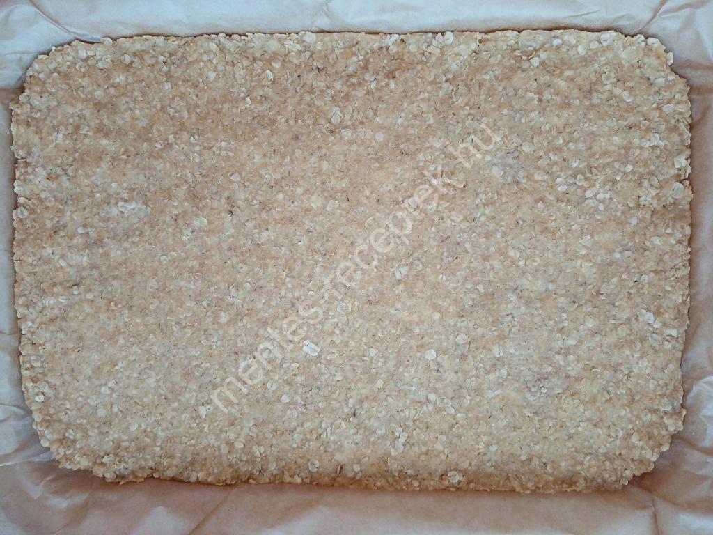 Egy közepes méretű tálcát kibéleljük sütőpapírral, majd a masszát szépen egyenletesen eloszlatjuk benne. Jól ellapigatjuk, lenyomkodjuk és mehet a hűtőbe dermedni.