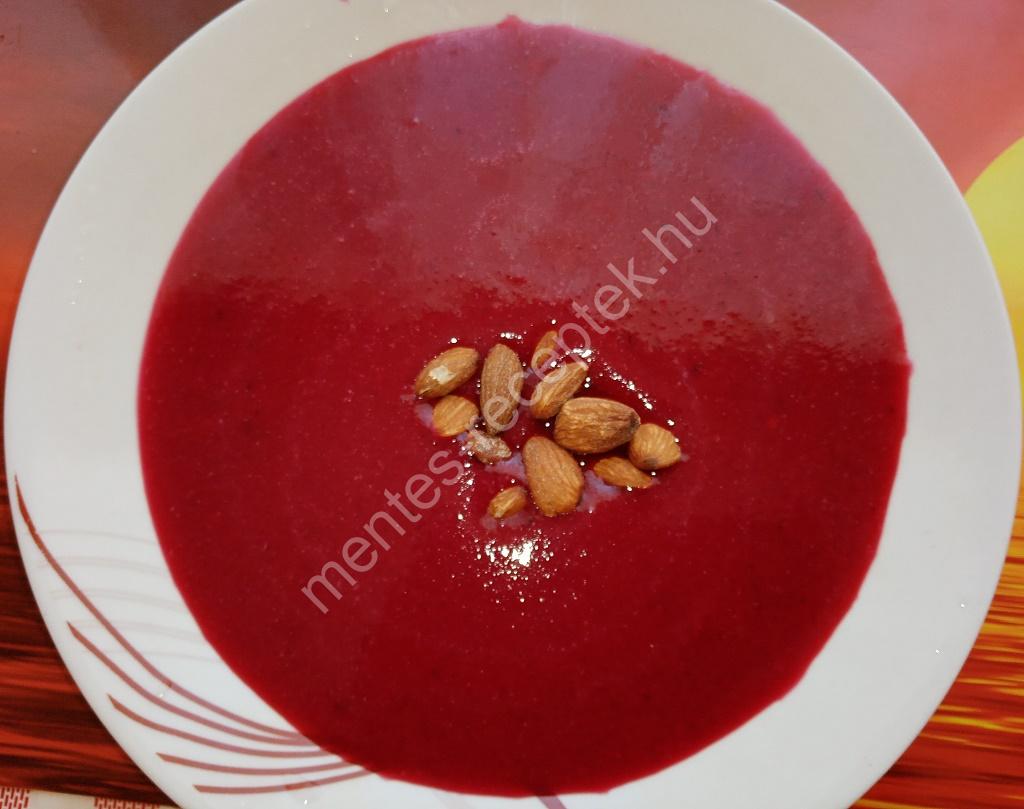 Turmixba daraboljuk a sült céklát, tegyük hozzá a beáztatott keveréket, adjunk hozzá kb. 2 dl vizet és mehet a turmixolás.