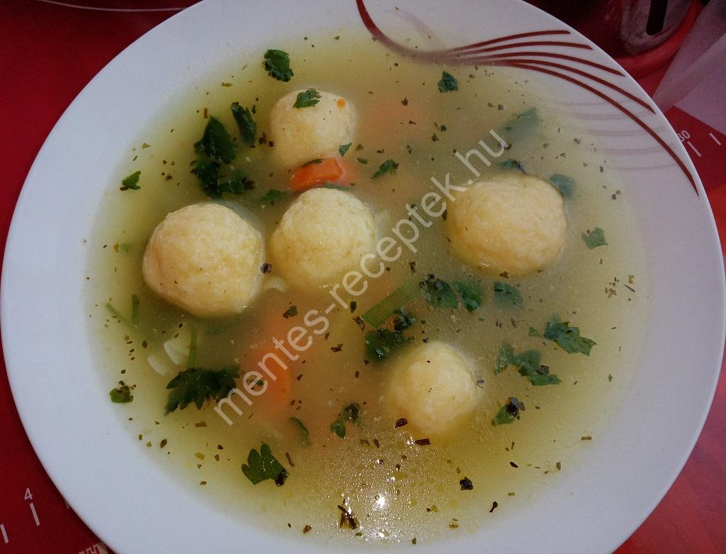 Ha megfőtt a sárgarépa, a masszából kis gombócokat formálunk és a forrásban lévő levesbe rakjuk. Újraforrás után közepes lángon folytatjuk, amikor feljönnek a tetejére még pár percig főzzük és kész. Forrón tálaljuk.